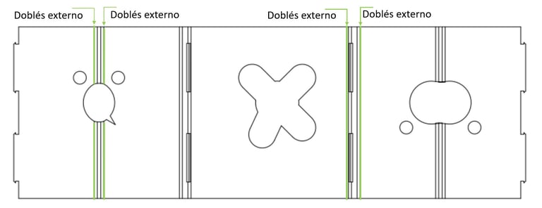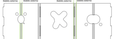 En los archivos DXF (Insertos superiores) se muestran 2 lineas que indican cortes de suaje, esto es debido al radio del doblés que genera el CAD, puede tomar los dobleces externos como referencia y eliminar el interno.